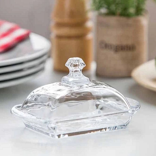 Glossy Glass Butter Dish With Lid and Handle Baron H10cm Housewarming Gift Idea quantity